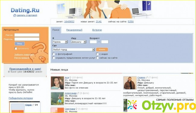 Приветствую вас, дорогие читатели! Спасибо, что не пришли мимо моего нового отзыва! Как вы уже поняли из названия темы, сегодня я буду вам рассказывать про один популярный сервис знакомств — сайт Dating.ru. Сразу скажу, что, если вы против сайтов знакомств, то вам мой отзыв лучше не читать! Я сама прекрасно знаю, про все минусы такого способа общения. Однако не стоит обобщать и делать поспешные выводы: у нас существуют действительно качественны площадки, где люди могу знакомиться для серьезных отношений или же для секса на одну ночь (это личное дело каждого, для чего ему знакомства).