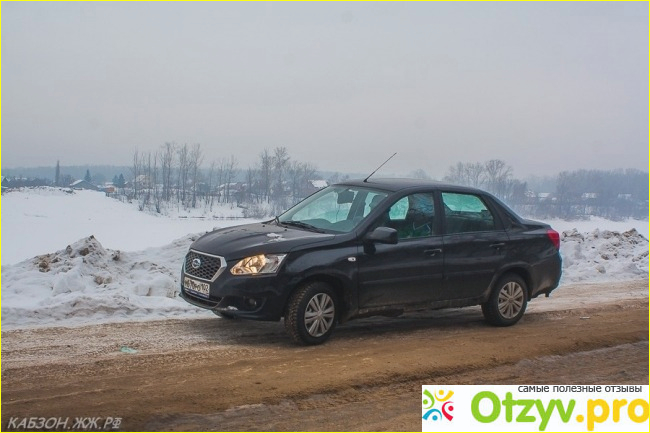 Двери и приборная панель отделаны обычным твёрдым пластиком. С него легко убирается пыль, но легко поцарапать и эти не большие повреждения очень становятся заметными. Кресла в салоне очень мягкие и удобные. Задние, при желании, можно сложить, если убрать подголовники. Очень важно то, что запчасти для Датсун можно найти в любом магазине. То есть ремонт, при необходимости, можно провести быстро. Ходовая часть машина просто на высоте. Машина по кочкам и ямам ездит отлично, пассажиры при этом не испытывают сильной тряски. Но резкое маневрирование это не для Датсун он до. В такие моменты автомобиль начинает крениться. Ещё и руль не очень отзывчив. что бы объехать да же не очень большое препятствие приходится делать быстро два перехвата руля. Это будет пролематично для тех, кто не владеет скоростным рулением. Если же не разгоняться и ехать на степенной скорости, то особым проблем не возникнет. Датсун он-до не для быстрой езды. Мотор восьми клапановый мощностью в 80 лошадиных сил, автовазовского производства, за эти деньги это отличный двигатель. С этим агрегатом машина так же бодро передвигается по городу, как и другие более мощные иномарки.