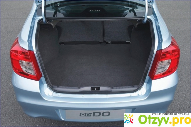 Если говорить о минусах, то они конечно есть. Первый из них это неприятный звук коробки передач, который очень напрягает. Чем сильнее жать на газ, тем навязщивее становится это звуковой фон. И второй это не всегда чёткая реакция на команды управления. Коробка передач в этой машине пяти ступенчатая с тросовым приводом, вибрации на рычаге нет. О достоинствах Датсун можно говорить долго, так как их больше. У него отличная подвеска, для наших дорого отлично походит. Высота клиренса больше 175 см. А при реальных замерах владельцами оказывается, что -то около 122 см. Так же в отличие от Лады доработана шумоизоляция. Она действительно не пропускает посторонних звуков. Если не считать воя коробки. Во время быстрой езды то же можно наслаждаться тишиной. Очень существенный плюс этого автомобиля это его багажник. Он очень большой, вмещает 530 литров полезного объёма. Не один производитель не предлагает машины за такие деньги с таким огромным багажником.