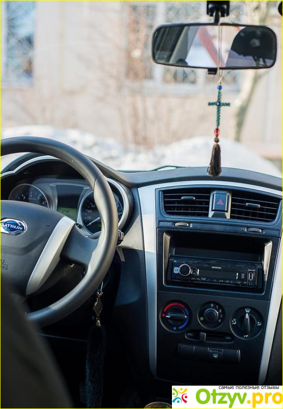 Что могу похвалить, так это подвеску. Она чуть жестковато настроена, но это для наших не самых хороших дорого, особенно за городом. Знаете, когда я решил купить Датсун? После тест-драйва. Сначала менеджер показал мне, как разворачивается Датсун на дороге, ограниченной поребриками. Он просто поворачивал до момента, пока колесо не упрется в поребрик. Клиренс достаточно высокий для такого небольшого автомобиля, кузов поребрики не задевает, можно спокойно разворачиваться, не обращая на них внимания. А потом на скорости он перескочил с асфальта на замерзшую изрытую голую землю. Подвески я почти не услышал, отработала она эти замерзшие рытвины по полной программе. Тогда я понял, что машина неплохая. Насколько я знаю, японские конструкторы немного переработали и улучшили грантовскую подвеску.