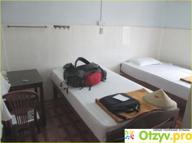 Комната типовая - перекладина для полотенца, крючки над кроватью, розетка, включатель для вентилятора и пульт для кондиционера. Слева стол и стул. На одного человека две кровати , 2 малых и два больших полотенца. На одной кровати я спал, на другую положил рюкзак, ноутбук и соломенную шляпу