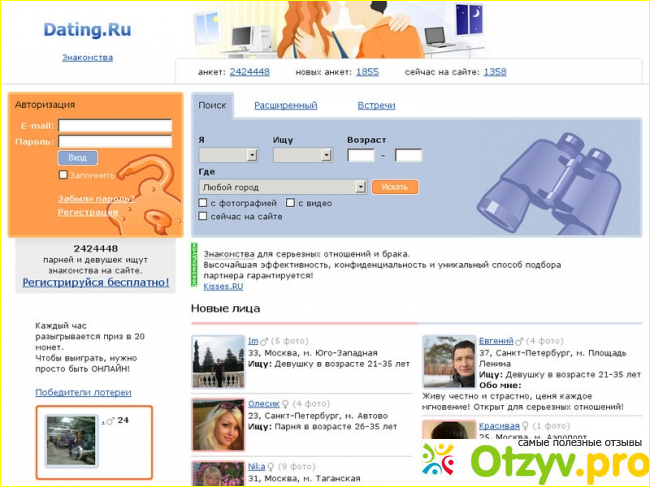 Если вы действительно хотите завести отношения в интернете, тогда советую вам присмотреться к проекту Фотострана, там реально мне удалось завести отношения с одной девушкой, мы даже встречались небольшое время. Но для себя я сделал жирный итог: знакомства в интернете - это как рулетка. По началу вы такие милые, но стоит встретиться, то вы становитесь скованными в своих действиях, пропадает дальнейшее желание общаться. Все же знакомиться нужно другими, более естественными способами, не копаясь в интернете, в виртуальности. Ну а теперь давайте более детально разберем проект Dating RU с момента регистрации.