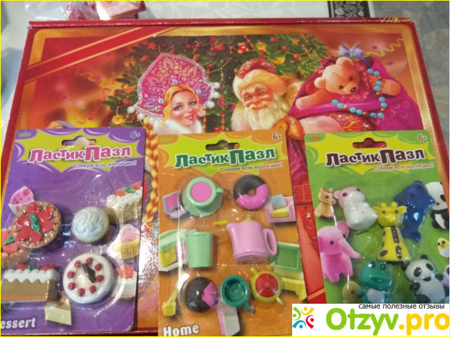 Одна мамочка рассказала, про интернет-магазин Новогодних подарков и уже в нем решили выбрать что-то прикольное. Оказалось, что в каталоге на наши финансы было много предложений, различные раскраски, шоколадные монетки, открытки, мы единогласно проголосовали за ЛастикПазл, мелочь но приятно).