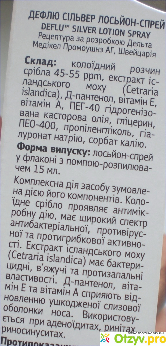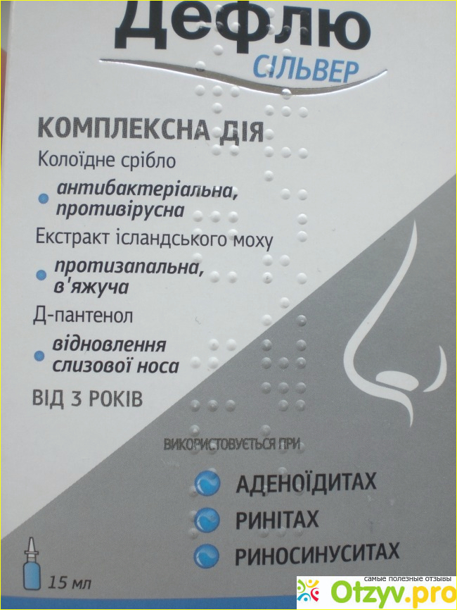 Дефлю Сильвер отлично помогает справиться с насморком при гриппе и простуде, тонзиллите, и т. д.