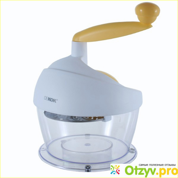 Чаша терки Dekok UKA-1211 выполнена из прозрачного пластика, что позволяет контролировать объем нарезанных овощей и регулярно освобождать чашу.