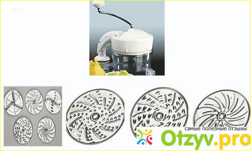 Всего ножей 5, они имеет отверстия разного размера, что позволит нарезать овощи на салат или же на рагу. А также мелко натереть необходимые компоненты.