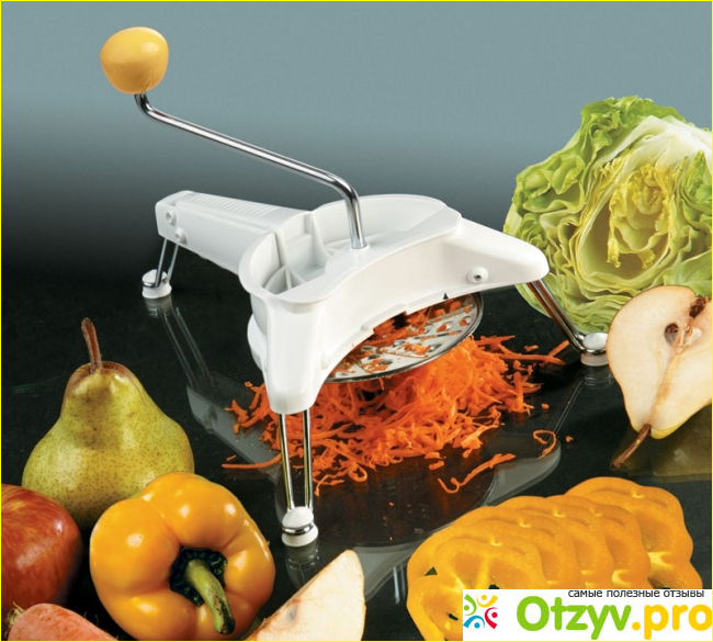 Так же в ней есть все необходимые терки - нарезки, как для мелких нарезок, так и для нарезки более крупных ломтиков.