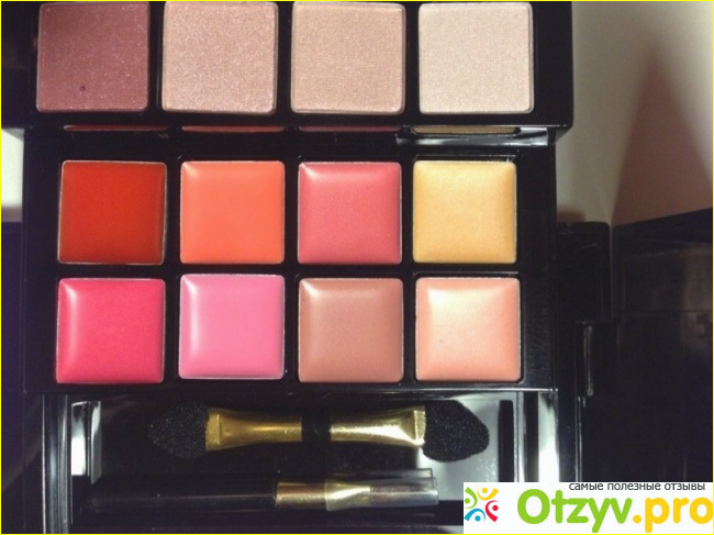 Существуют конечно же и палетки с губной помадой, а также с различными оттенками румян.