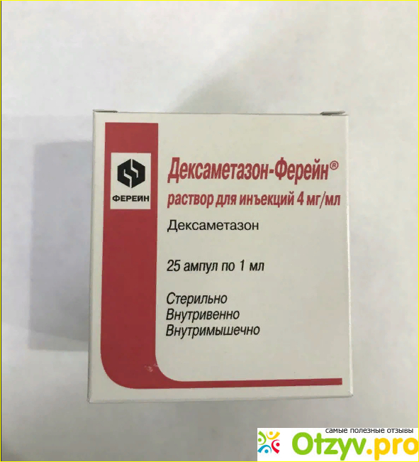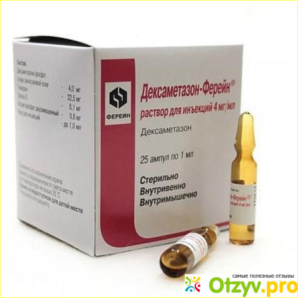 Оказывает: противовоспалительный эффект, обезболивающий, противоаллергенный, противошоковый, иммунодепрессивный, десенсибилизирующий, антитоксические и тому подобное. Благодаря Дексаметазону удается устранить множество заболеваний и синдромов. Возьмем в качестве примера лекарства Дексаметазон Ферейн – он относится к глюкокортикостероидным вещества или проще говоря ГКС, в составе содержится действующее вещество дексаметазона натрия фосфат в дозировке по 4,0 мг. Выпускается в форме раствора прозрачного цвета.