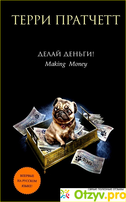 Данная книжка второй роман из цикла про Мокрица фон Липфига про Плоский мир. В первой книге авантюрист-мошенник подымал на ноги почту, в этой истории главный герой отправляется наладить работу банка, потому что почта отлажена, работает прекрасно и без него, становится скучно.