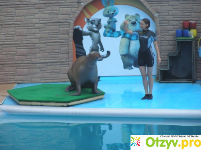 Очень эффектно выступают и дрессировщики дельфинов, совместные номера очень завораживают, ну ка можно удержаться на носу у дельфина на ногах, я не знаю. Нет страха у них , ни волнения, дельфины все красивые, ухоженные, сам дельфинарий удобен для посещения, проходить много места, свои места также легко найти, номера подписаны, разделено на блоки, первые ряды особо в восторге находятся, их специально обрызгивают мне кажется)