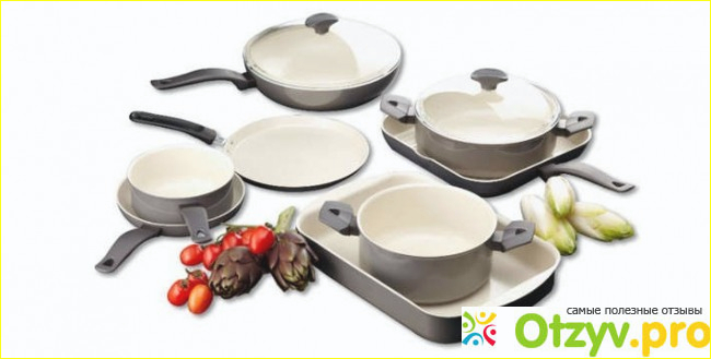 В набор посуды, который я себе купила входит две кастрюли, ковш, и четыре сковородки разного назначения. Мне вообще понравилось, что в этом наборе есть сковородки, ведь если кастрюльки, хоть немного, но у меня есть, то сковородка только одна и все. И вот я решила именно из-за этого себе и взять, мне он сразу ну очень понравился!! Но каково же было мое разочарование, когда я начала пользоваться данным набором и когда начала готовить в посуде фирмы Delimano.