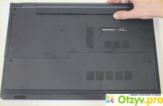 Теперь дно. Оно так же пластиковое, черное. Батарейка слабовата. Хватает как бы, но учитывая начинку в виде процессора с очень низким потреблением, можно было бы поставить усиленную батарею, что бы ноут работал хотя бы часов восемь в режиме просмотра видео.