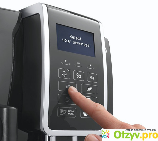 Кофемашина DeLonghi Dinamica ECAM 350 В.15 стала еще проще в управлении, чем ее предшественники, ведь кнопочное управление ею исчезло. Конечно, кого-то это может огорчить, ведь не всегда хочется грязными пальцами прикасаться к аккуартной кофеварке, но зато и кнопки не западают, и грязь на них не налипает. Я отдаю предпочтение сенсору, поэтому этот момент только в плюс.