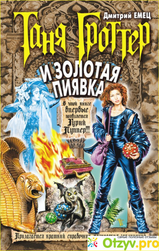 "Золотая пиявка" - это третья книга повествующая читателям о жизни Тани Гроттер. Пожалуй, последняя из книг данной серии, которая имеет большое количество совпадений с "Гарри Поттером".