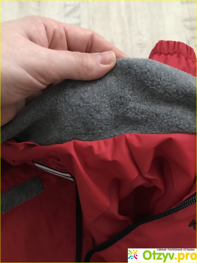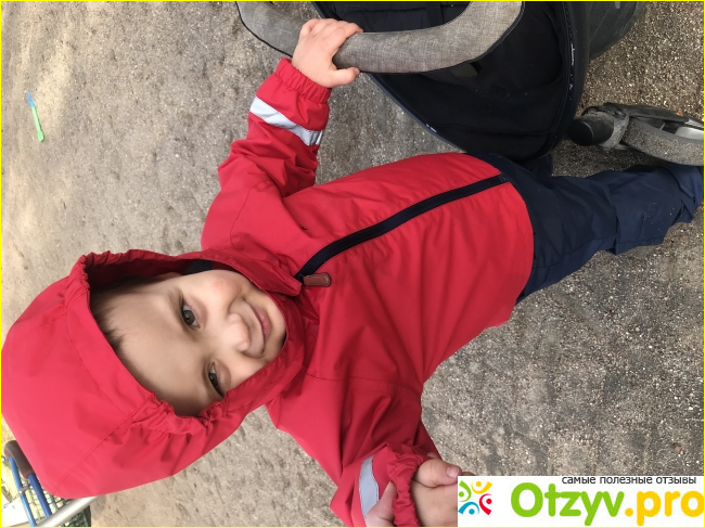 Итак, это «двойка» - куртка и штанишки. Куртка - яркого красного цвета, есть светоотражающие элементы, капюшон идёт на кнопках (и при необходимости его можно всегда отстегнуть), порадовало то, что воротник оторочен мягкой тканью.