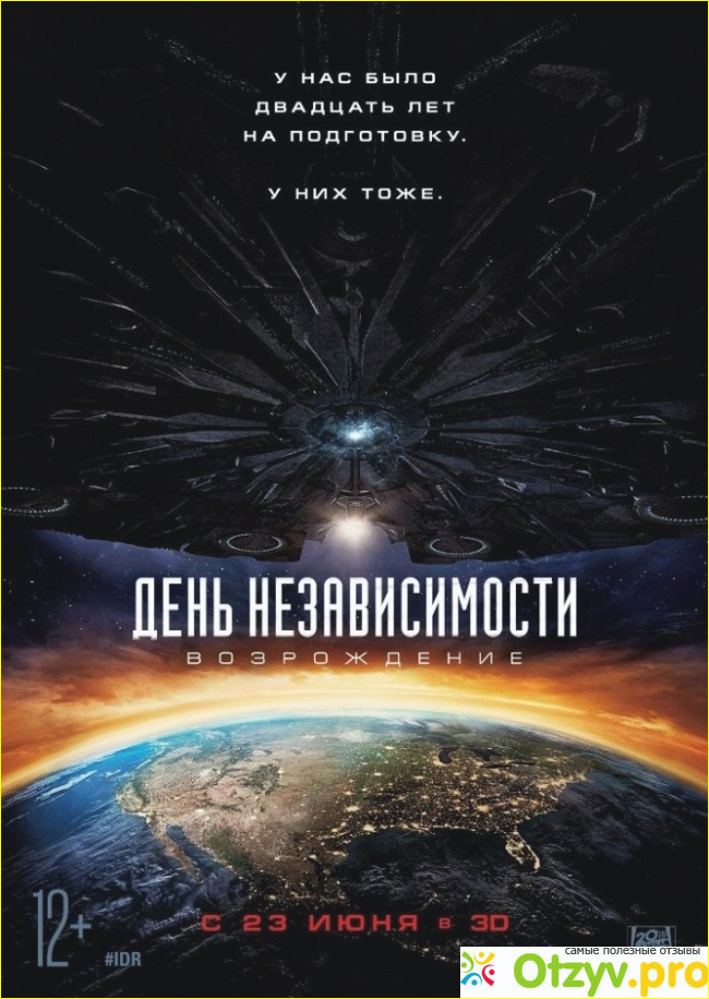 Новый фантастический боевик, который называется "День Независимости: Возрождение" (2016), о самом фильме. Из него можно смело вырезать не нужных людей и сцены, которые не запоминаются, да и не кому ни нужны, картинка и спецэффекты хорошие, но много шаблонов и плагиата. НО в целом смотреть можно! А сейчас я много прервусь от темы этого отзыва: «Новый фантастический боевик, который называется "День Независимости: Возрождение" (2016), о самом фильме.» и подвожу Вас дорогие мои читатели к самой главной теме этого отзыва: «Новый фантастический боевик, который называется "День Независимости: Возрождение" (2016), вывод. ».