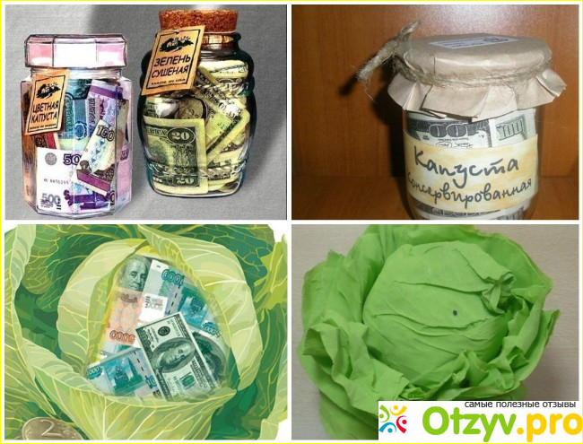 2. Можно преподнести настоящую капусту: купить кочан, вырезать середину и оставить только наружные листья, а внутрь аккуратно положить деньги. Это будет действительно оригинально и забавно!