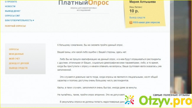 А теперь рассмотрим подробнее самый известный и популярный сайт-опросник "Платный Опрос". С регистрацией проблем нет. Нет проблем и с опросами. Действительно периодически появляются. К большинству опросов я оказалась непригодна. И что-то заработать и вывести не удалось.