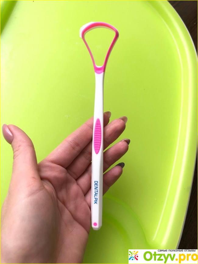 Скребок выполнен вполне достойно. Он легкий, из простого, но прочного пластика. Ручка хорошо лежит в руке, не выскальзывает, пользоваться вполне комфортно. Очищение языка происходит очень быстро, самое главное понять, как правильно выполнять этот процесс. Для меня это завершающий этап после чиски зубов. Я беру скребок и провожу им от корня языка до его конца в середине. При этом, не нужно оказывать сильного давления, иначе ощущения будут неприятными и возможно болезненными.