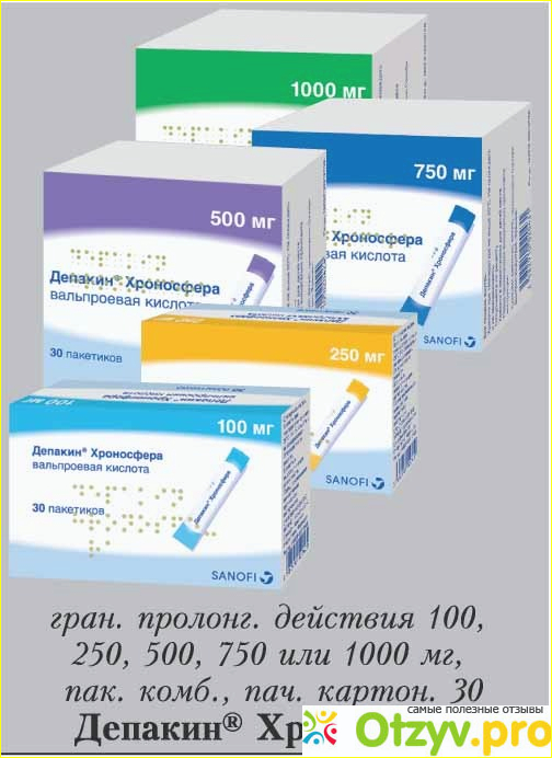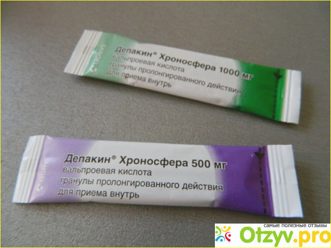 Депакин хронсофера это вальпроевая кислота. Точнее гранулы, упакованные в пакетики по 250 мг, 500 мг, 750 мг. Пить его нужно во время еды или же сразу же после. Эффект накопительный, достигается при регулярном приёме.