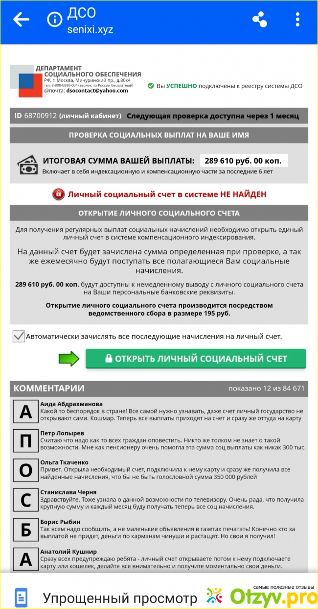 На той же странице внизу тысячи восторженных отзывов таких же "счастливчиков", как и я: всем выплатили по 200-300 тысяч, и будут платить ежемесячно. У них есть даже фамилии и имена.