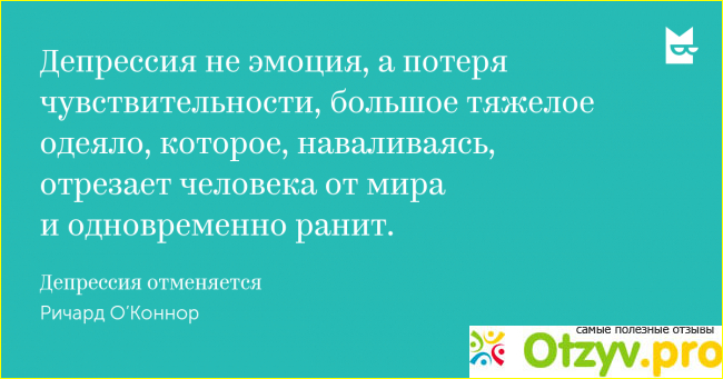 Депрессия бывает у всех. И я довольно часто сталкиваюсь с этим негативным состоянием, когда ничего не хочется, нет настроения и энергии что-то делать. Книга о депрессии заинтересовала меня, так как я часто борюсь с ее признаками. Ричард ОКоннор в своей литературе рассказывает нам о том, какие виды этого состояния существуют, как они влияют на наше тело, мозг. Например, с очередным приступом мы теряем способность продуцировать гормоны радости на 20%.