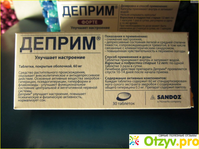 Деприм я выбрала потому, что он чисто растительного происхождения... И цена нормальная. Это всего каких-то 120 рублей за упаковку в 30 таблеток....