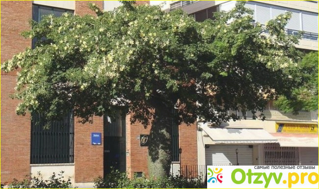 Чем примечательна хоризия? На вид она высокая, раскидистая, имеет особый бутылкообразный ствол (как будто раздутый посередине). Вообще я в первый раз увидела такое дерево на отдыхе в Испании.
