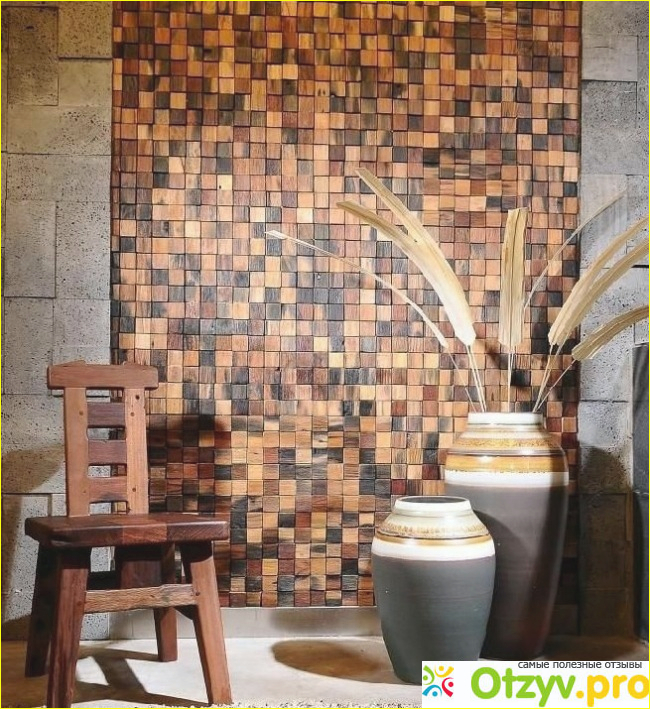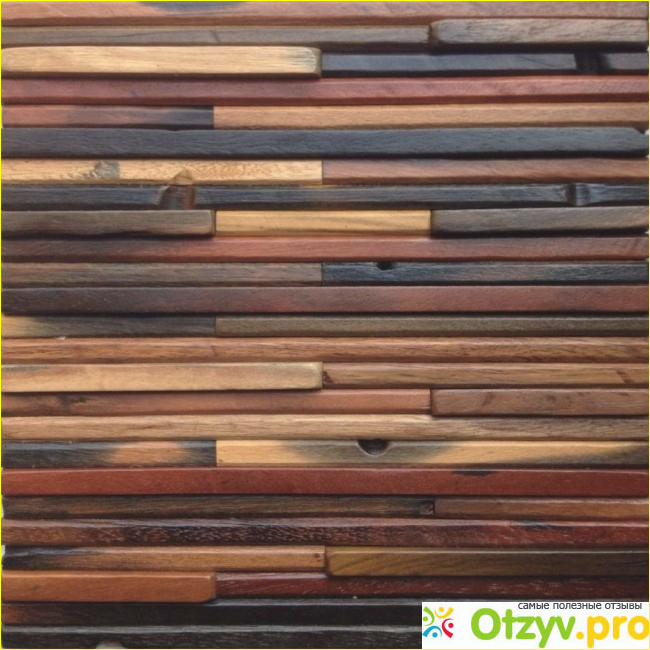 Мне хотелось что-то натуральное, не пластик, не ДСП. Но время шло, а на ум ничего не приходило. Как-то раз мы с мужем были в небольшом ресторанчике и вот тут ко мне пришло вдохновение. Я осматривала интерьер и не могла оторвать глаз. Полы, стены, предметы дизайна были из дерева, с подсветками это было так красиво и уютно. Я увидела деревянную мозаику на стене и я поняла. что для своего летнего домика хочу именно это.