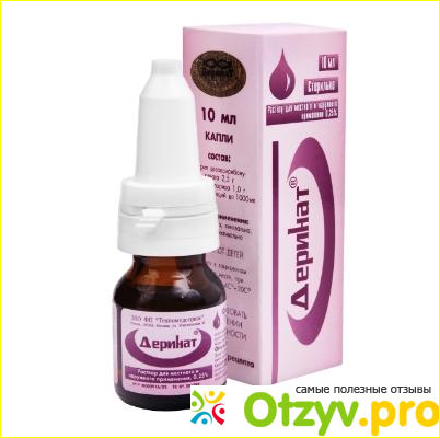 Деринат есть в разных формах выпуска - как в виде раствора, так и в виде спрея. Поэтому в аптеке я просто сразу прошу дать мне в розовой коробочке - это капли.