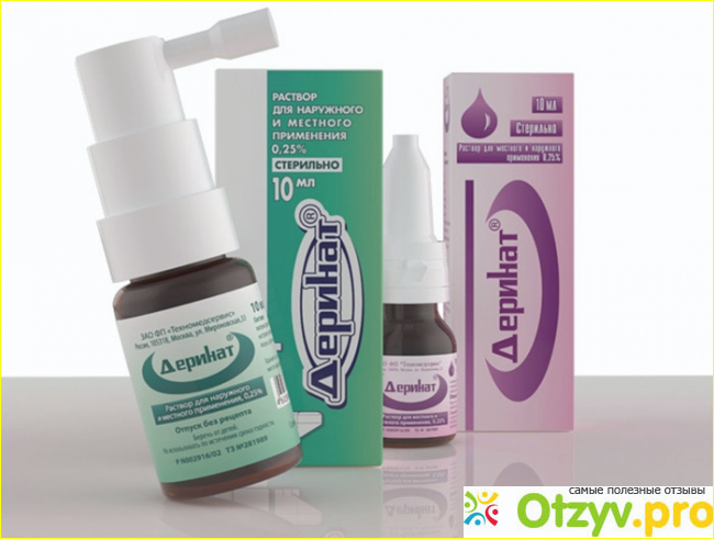 Деринат выпускается в нескольких формах: раствор для внутримышечного введения по 5 мл, Деринат спрей по 0.25%, Деринат флакон-капельница по 0.25%.