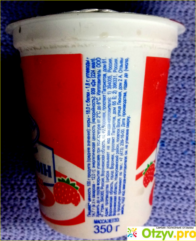 На баночке также есть информация для потребителя. Штрихкод и состав расположены сбоку, а на передней стороне написано "С творогом" большими буквами, чтобы привлечь внимание покупателей. Я обратил внимание, что десерт изготовлен по СТО и содержит 18% массовой доли жира, при этом в составе есть заменитель молочного жира. Основным ингредиентом является восстановленное молоко из сухого обезжиренного молока.