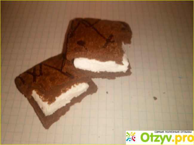 Довольно неплохим оказался вкус. Нет тех признаков, что меня не устраивали в тех десертах, что пробовала раньше. Во-первых, нет химического привкуса, ощущения синтетики. Я точно не уловила. Во-вторых, в бисквите нет той резиновости, что зачастую присутствует в подобных изделиях. Верхние слои очень нежные, легко сжимаются даже под пальцами, тем более, при откусывании. Шоколадный вкус присутствует. Прослойка тоже вкусная, нежная. Сладость в норме, неприторно. А все вместе можно определить как тающий во рту десерт.