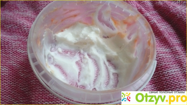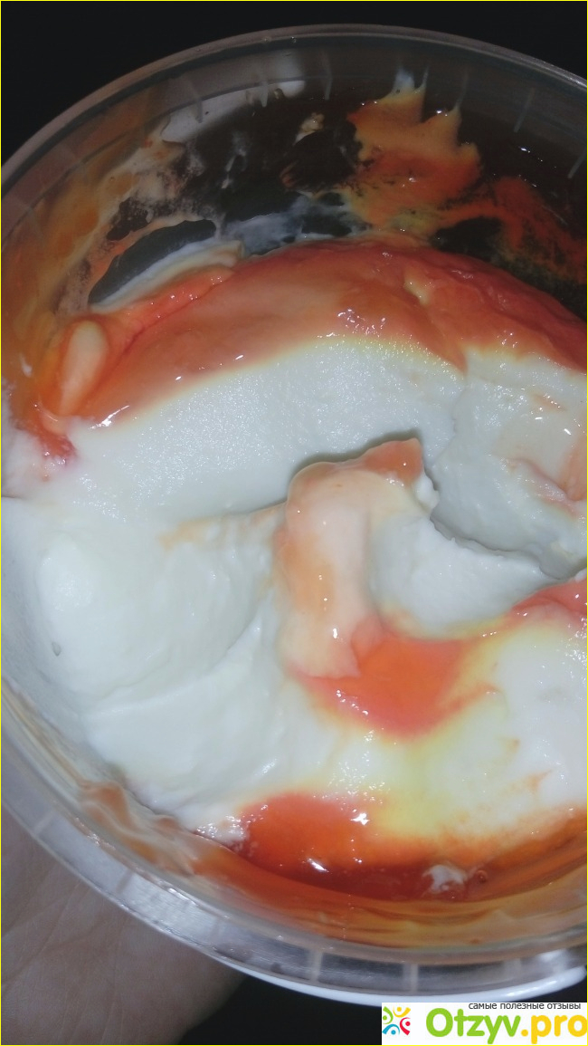 Десерт без растительного привкуса, не слишком жидкий. На дне коробочки жидкость не отслаивается.