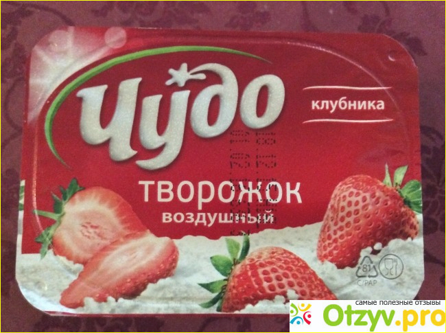 Итак, перед Вами творожный взбитый десерт от торговой марки "Чудо" - "Творожок воздушный" со вкусом клубники. Молоко, основой которого и является данный продукт, содержит в себе более двухста компонентов, необходимых для обеспечения продуктивной жизнедеятельности человеческого организма. Добавьте к этому нежный джем желеобразной текстуры с волшебным ароматом и не менее волшебным вкусом. А сама творожная масса воздушная сама по себе, она буквально тает во рту и на языке. Вот уж действительно - чудо. Ощущение сказки.
