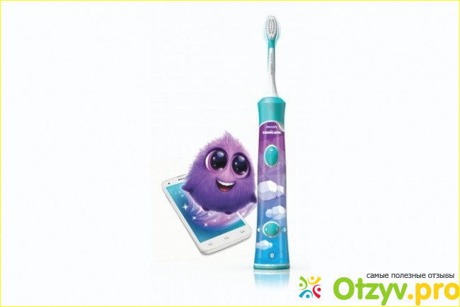 - щетка работает вместе с приложением, которое предварительно скачиваете на свой смартфон. Чистка зубов становиться для деток веселым и занимательным занятие. Супер придумали.