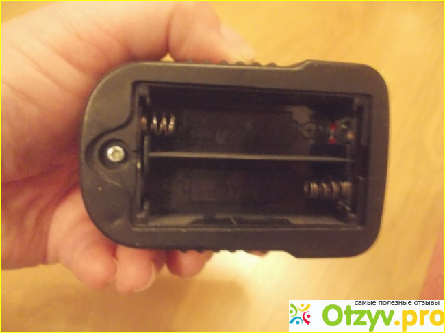 Работает от двух батареек типа АА(пальчиковые, в простонародье).
