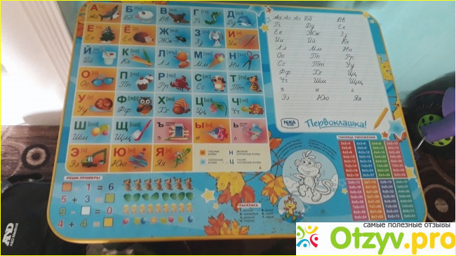 Там нарисован алфавит, цифры, и даже есть раскраска. И этот рисунок не куда не денется и даже не сотрется.