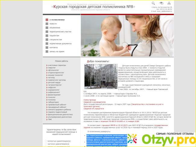 В самой поликлинике работает одновременно два педиатрических отделения, что делает прием пациентов быстрее, продуктивнее, но профессионализм от того не затрагивается и не страдает.