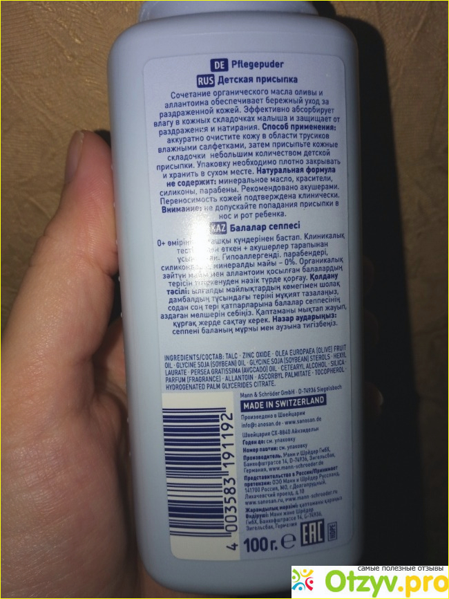Сыночку 4 месяца, с рождения мы не знали что такое опрелости, но сейчас летом, в жару, после ночного сна, я начала замечать покраснение и раздражение в области подгузника и на спинке. Педиатр посоветовала нам использовать присыпку, почитав отзывы в интернете, я остановилась на детской присыпке фирмы Саносан, в первую очередь, мне понравился ее состав и то, что косметика данной фирмы производится в Германии, что тоже сыграло в плюс при ее выборе.