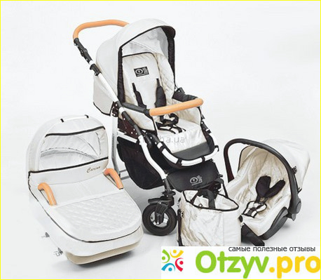 Цвет нашей коляски белый. На первый взгляд это не практичный цвет, но там изумительное качество материала, что достаточно просто загрязненное место очистить влажной салфеткой и не останется и следа. Как вы видели ранее в описании в комплект входит люлька, прогулочный блок, также авто-кресло.