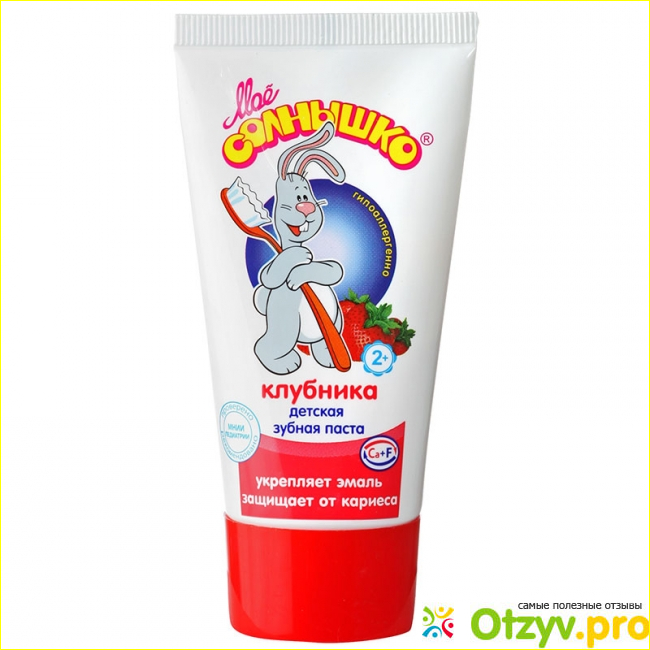Что то не подходит по своему дизайну, у других паст ужасный состав, третьи не внушают доверия. Когда мы пришли в магазин перед нами стоял непростой выбор, благо консультант быстро пришла нам на помощь. Мы пересмотрели много вариантов, и наконец нашли ту самую. это была детская зубная паста "мое солнышко" со вкусом клубники. Почему именно она нам подошла? Во-первых, это приемлемая цена, 35 рублей. Ну разве это много в наше время, когда аналогичные товары российского производства переваливают за сотню, а то и не за одну. Во-вторых интересный ненавязчивый дизайн. На коробочке изображен милый заяц с зубной щеткой и клубникой. Мой малыш сразу потянулся к этому интересному тюбику. В-третьих приятный вкус, а это так важно для маленьких непосед, которые только начинают познавать мир.