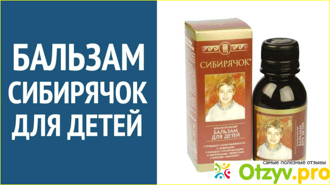 В целом бальзам Сибирячок способен повысить общую сопротивляемость к инфекциям. Именно поэтому бальзам Сибирячок используют в детском возрасте, он показан детям, страдающим различными острыми вирусными и инфекционными заболеваниями, часто простывающим детям, со сложной адаптацией организма, с ослабленным иммунитетом, а также для предупреждения перехода в хроническую форму таких серьёзных заболеваний, как бронхит и пневмония.