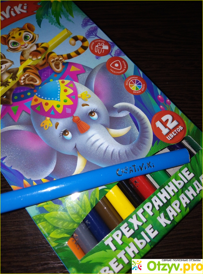 Индивидуально на каждом карандаше имеется логопит названия карандаша. Считаю этот момент важным, так как дома может быть масса разных карандашей, а чтобы их убрать ребенку правильно в упаковку он должен определить названия и трехгранность изделия. Что собственно есть у этой марки карандашей creativiki.