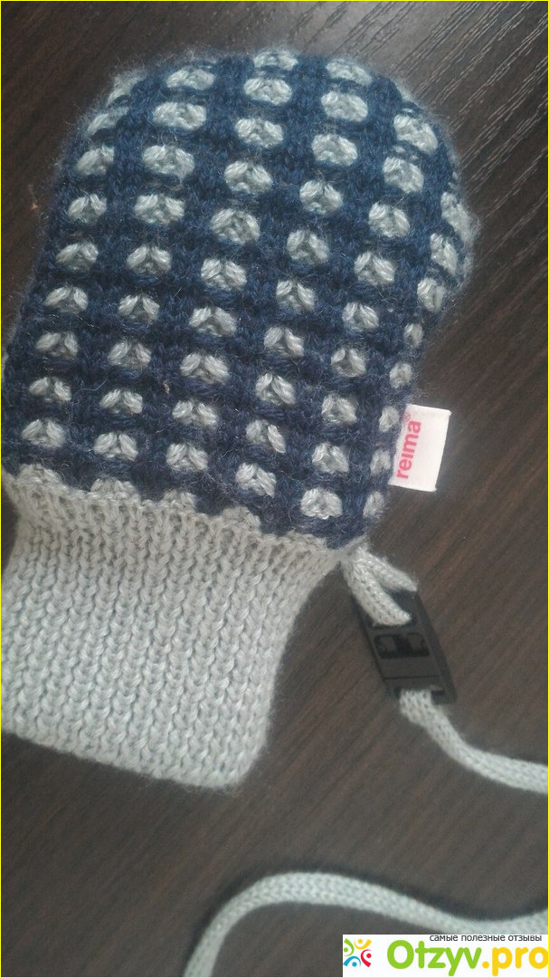 Мы купили варежки такого же бренда что и наш комбинезон. Отдали предпочтение фабричному вязаному варианту на завязках. Возможно такие были нам более ближе, поскольку в наше детство особо других то и не было. Если многие варежки для деток постарше и взрослых имеют как бы основание и отделение для большого пальца, то здесь есть только основание. И это правильно, поскольку, когда идет речь о детках, которым еще нет и года, то смысла в перчатках или отделении для пальчика абсолютно нет.
