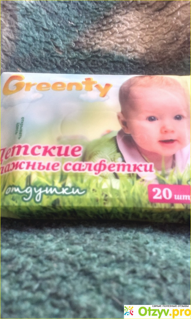Сегодня я вам расскажу о детских влажных салфетках " Greenty" без отдушек. Я купила несколько маленьких пачек, в которых по 20 штук салфеток, но есть и большие упаковки. Пачка с липкой лентой, самая обычная, но единственное, что радует глаз это приятная светло-салатовая расцветка.