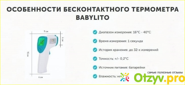 Бесконтактный термометр Babylito обладает следующими характеристиками: