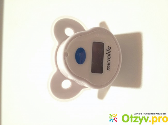Так выглядит термометр изнутри. Виден сам электрод. Очень удобно заменить соску на такой термометр при измерении температуры. Из минусов это то, что если ваш ребен беспокоен и кричит, не берет соску, то фактически с этим градусником вы не сможете справиться и придется иметь под рукой еще один, обычный. Термометр больше подходит для измерения в спящем состоянии ребенка или же в спокойном. Также вопрос о долговечности стоит открытым, т. к батареек там нету. Да и градусник этот скорее до первого года жизни не больше. И если ваш кошелек позволяет сие баловство, можете смело брать. Ну или можно совсем не заморачиваться, а пользоваться общим градусником. Только не забывайте обрабатывать перед употреблением с ребенком!