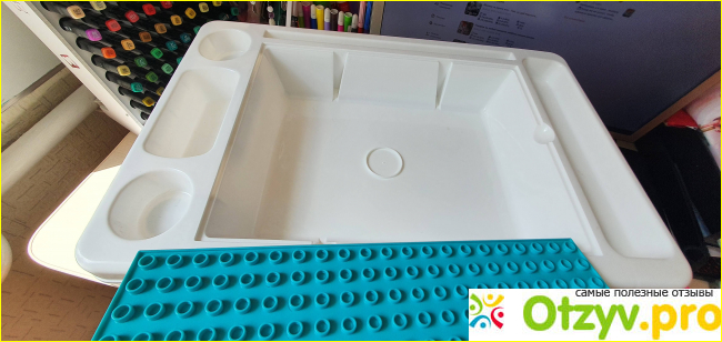 У данного стала огромный функционал: съемная панель (гладкая), съемные ножки. Можно играть не только в ЛЕГО Дупло, но и в песок и с водой возиться.